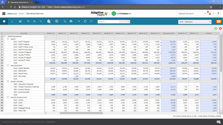 Workday Adaptive Planning aide les équipes en charge des prévisions de réduire le temps nécessaire à l'évaluation des recettes et dépenses à venir, à aligner les ressources avec les programmes, les effectifs et les cours, et à organiser le planning des inscriptions. Modelisez, prévoyez et analysez tous les indicateurs financiers ou non tels que les revenus liés aux cours ou non, la rentabilité et les effectifs. | Générez rapidement les états financiers et les rapports pour la direction à tout moment ! Analysez les données dans le détail pour obtenir la meilleure visibilité sur les dépenses et les recettes. Distinguez facilement entre le réalisé, les engagements et les prévisions. Analysez les données sur tous les niveaux de détails disponibles tels que les fonds, l'organisation, la nature, les programmes, les activités ou les employés. |